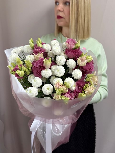 Главная страница » Каталог цветов » Повод » День рождения » Букет букет из эустомы и хризантем -1200