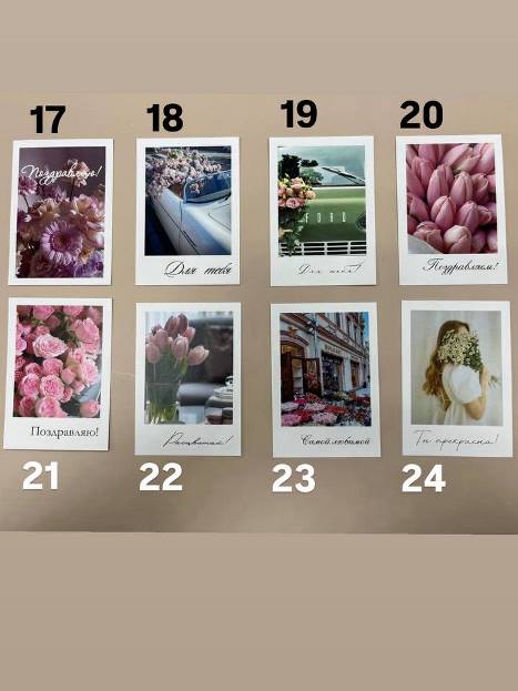 Выполнена из плотного дизайнерского картона и качественного полиграфического материала, размер 5*7 см